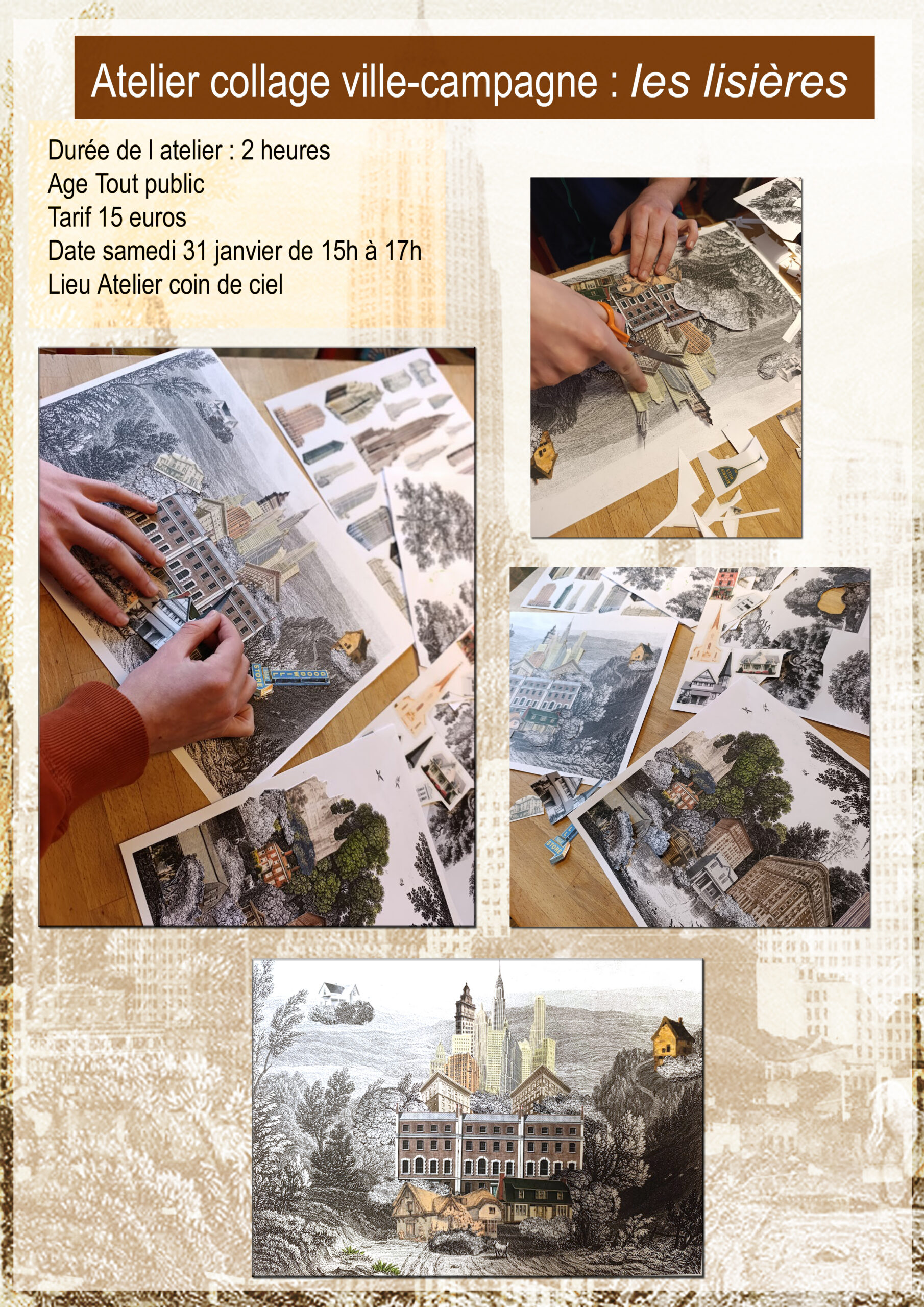 Le 31 janvier pour la fin de l’exposition collective sur « les lisières » Aurélie Vallet propose un atelier Collages qui est complet à présent